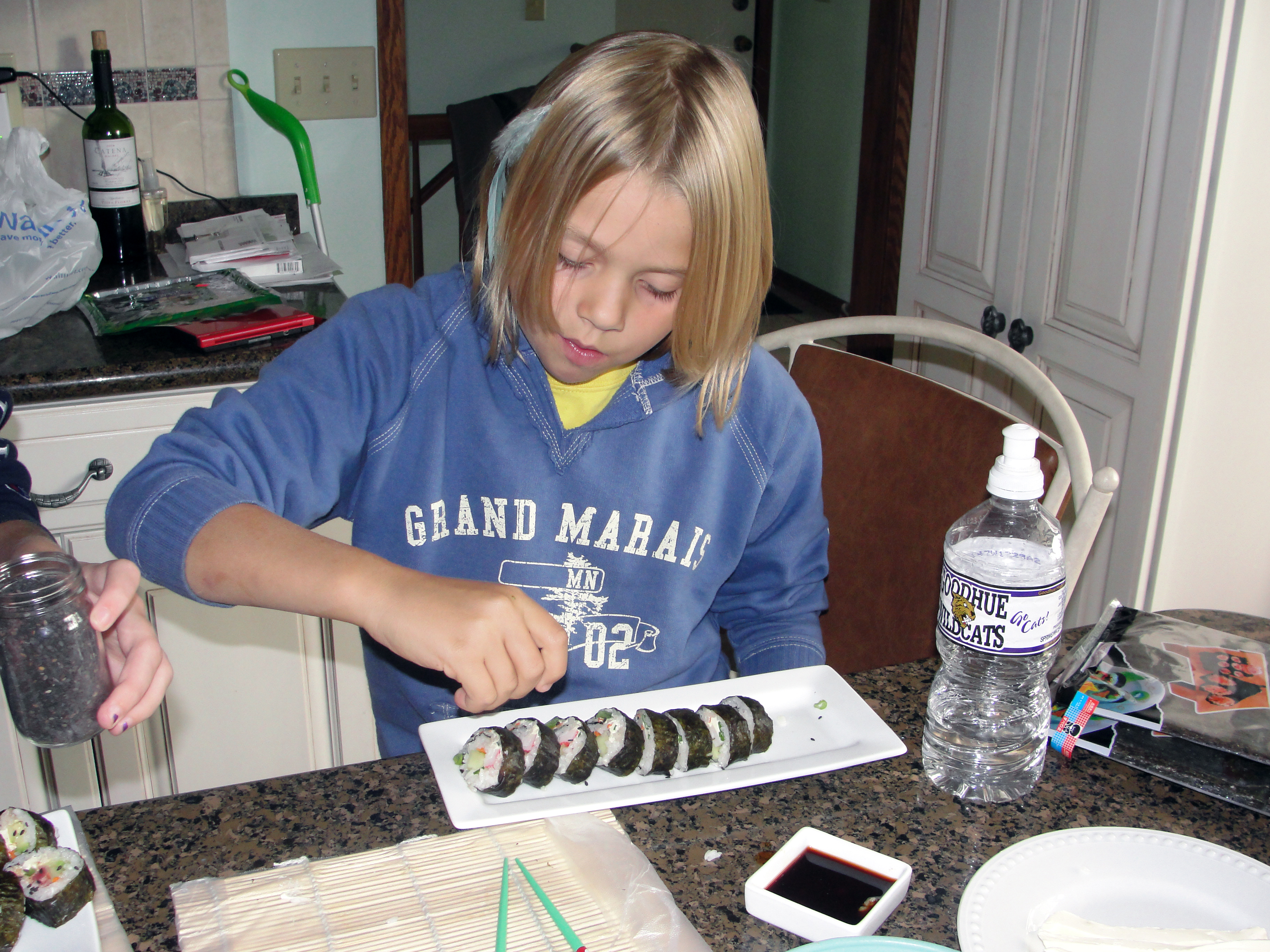 I love dinner with friends, the more the better! Summer and I have been trying to plan a get-together and we decided that tonight was the night. Her daughter, Isabelle, loves sushi and had been asking when they could come over and make some.