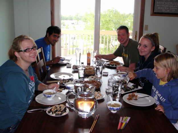 Summer made some awesome Egg Drop soup, I don’t have the recipe but it looked really easy. We also had some chicken fried rice and sesame chicken on the table.