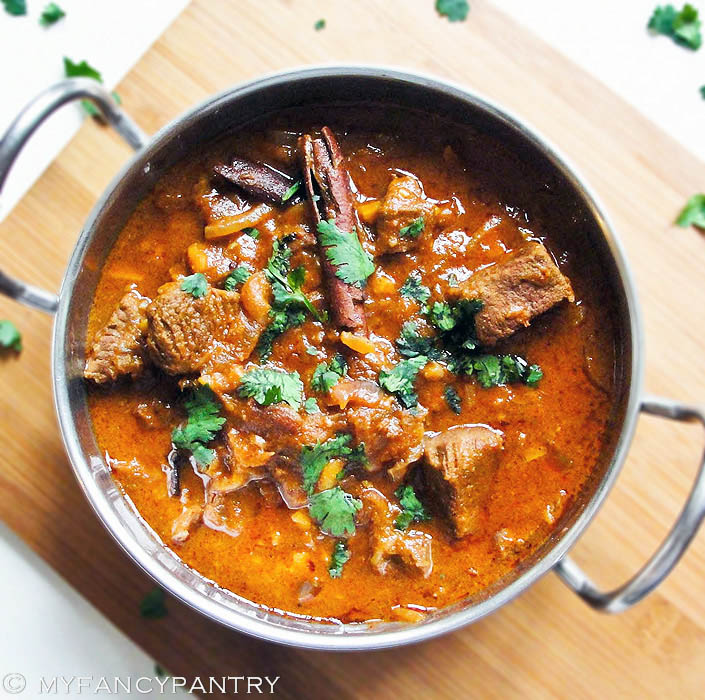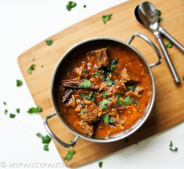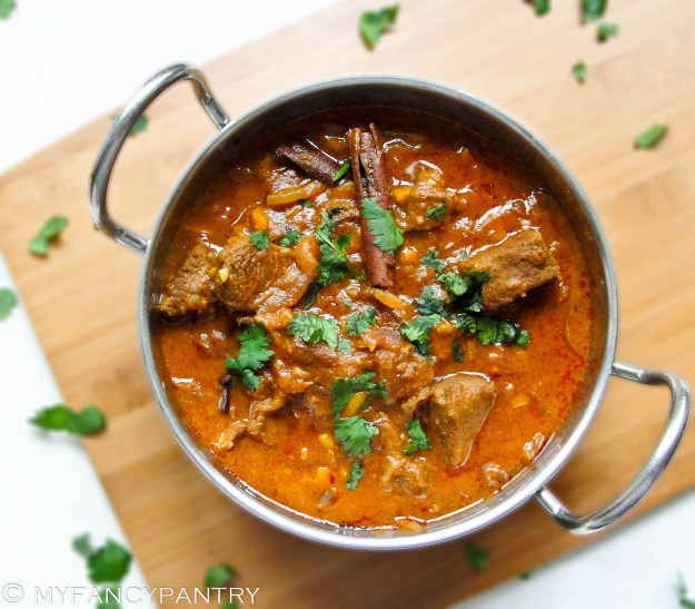I got the inspiration for this curry from the book I’m reading: “The Feast of Roses” by Indu Sundaresan. It’s the love story of Mughal Emperor Jahangir and Nur Jahan (Mehrunnisa). I find the story fascinating…and reading about all the rich, Mughal dishes makes my mouth water!