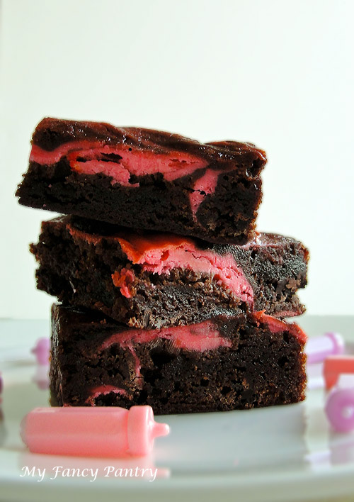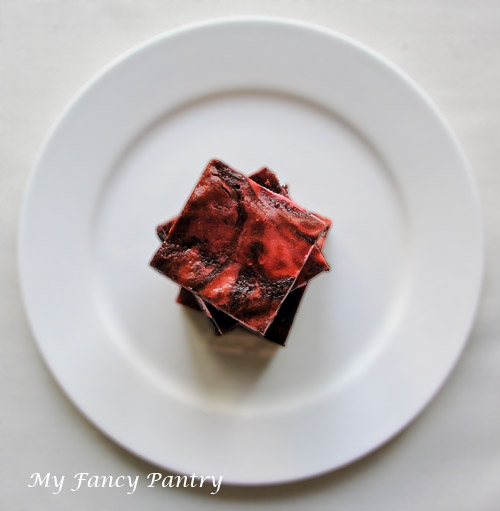 Any chance to use one of my favorite ingredients–goat cheese–I’m going to take it!  I never really enjoyed cream cheese brownies, but I love the beautiful contrast of the dark brownie and the light cream cheese.  So pretty!