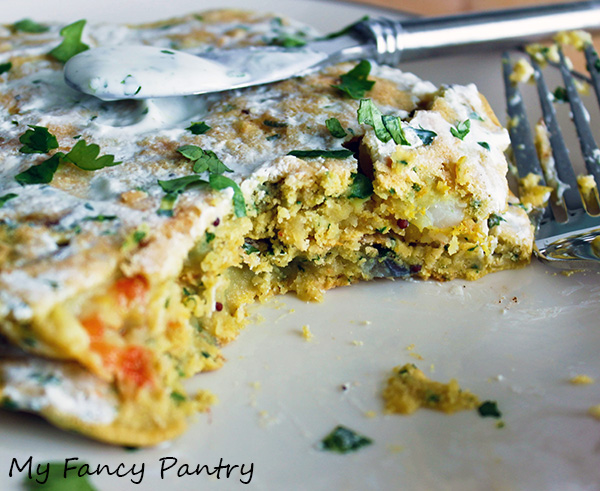 Such was the case with these delicious besan chillas.  I’ve never heard the word chilla before, and now when I google it, I can see the resemblance. Although, mine seems to be a little thicker than most chillas I saw.  And here, I thought I was just making a chickpea pancake.