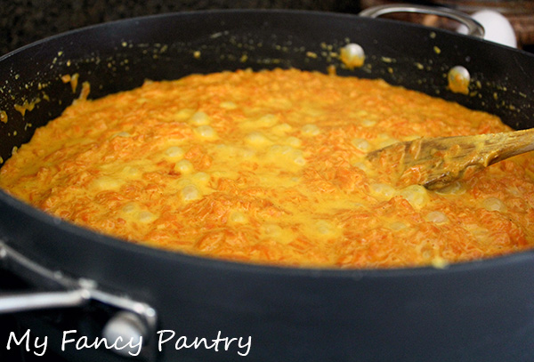 Trust me, if you are tempted to skip the whole shredding-your-own-carrots thing and just buy the shredded carrots from the supermarket…don’t do it!  Your halwa won’t have any where near the flavor it should.  Those pre-grated carrots taste a little weird.
