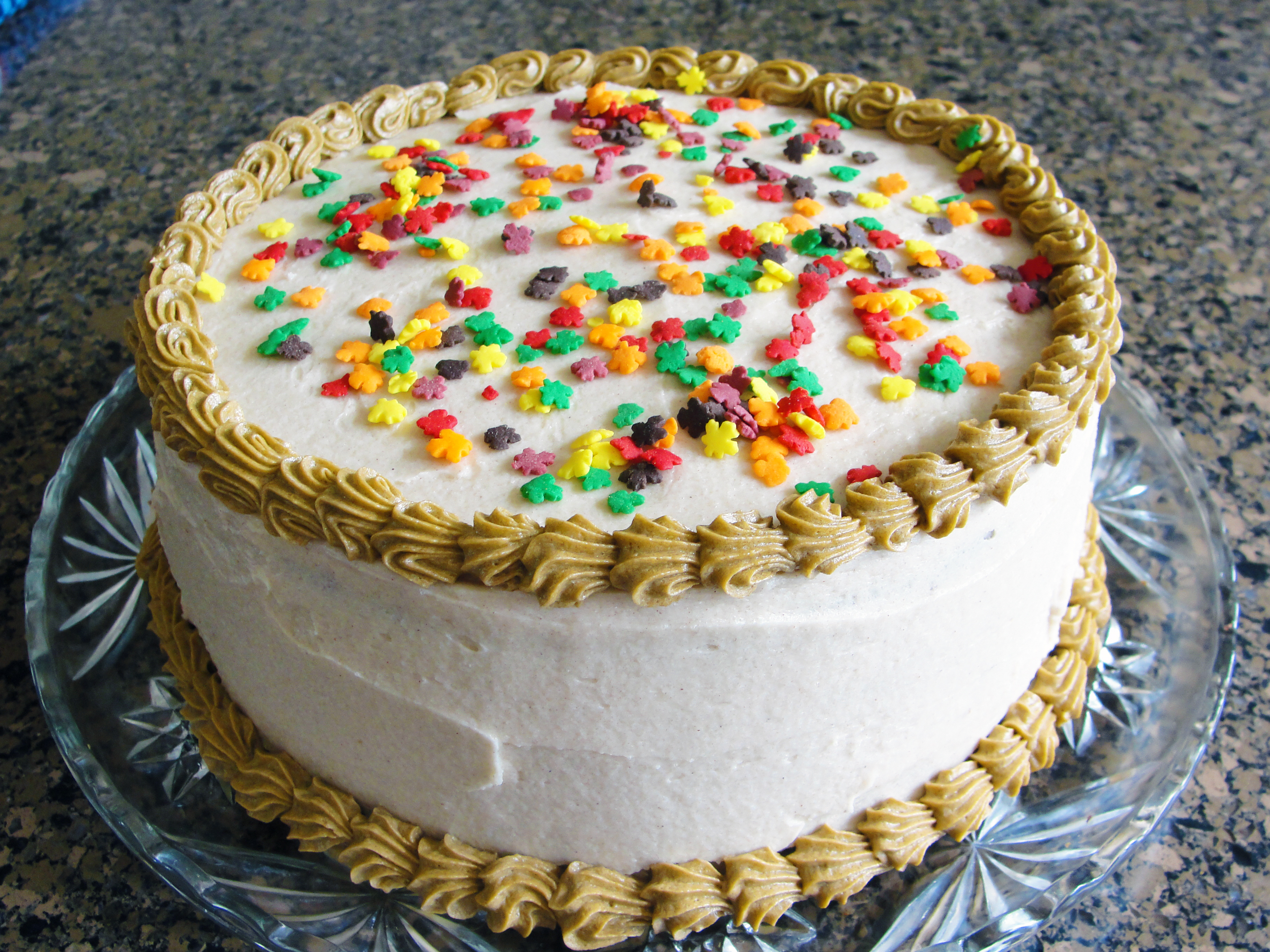 Anyway…back to the cake. This cake was a mini-wedding cake for one of my co-workers. She wanted a pumpkin cake (recipe) with cinnamon brown sugar buttercream. The only thing I was told was that it should be simple and incorporate trees and nature. That left a lot of room for my mind to wander and it was getting a little overwhelming. I had so many ideas…but no idea if they were the right ones!