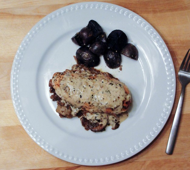 Earlier in the day I had thrown 2 chicken breasts in a giant zip-lock bag along with some olive oil, lemon juice, tarragon, garlic, salt and pepper. I had no idea what I was going to make with them, but I wanted it to have some flavor.