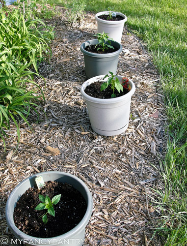 I decided to plant my tomatoes and peppers in 5 gallon buckets this year. I figured they’d be easy to move around if any of my plants start to get sick. Last year, one of my plants got some sort of fungus–and within days, all of my plants had fungus! Yuck!